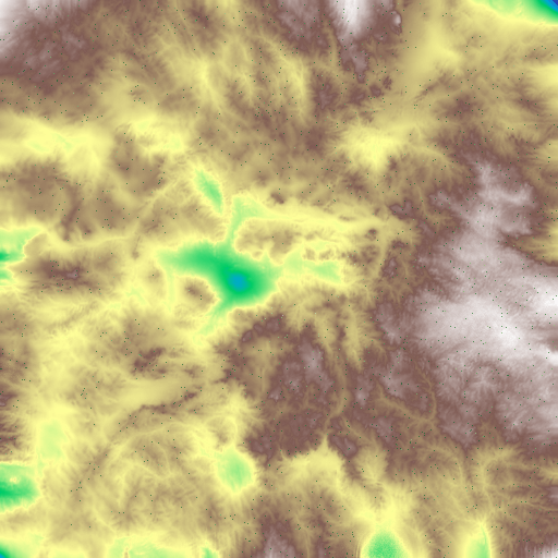 Finally we generate the satellite texture, a far distance color texture which is guided by the globally changing heightmap, tree density and climate conditions. We feed in heightmap, tree density, and a biome class into a controlnet style latent diffusion model trained on real-world satellite images. When the input data is consistent globally and roughly realistic it makes the ML model’s job easier.